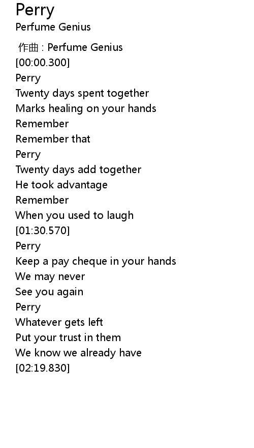 | [00:00.00] | 作曲 : Perfume Genius |