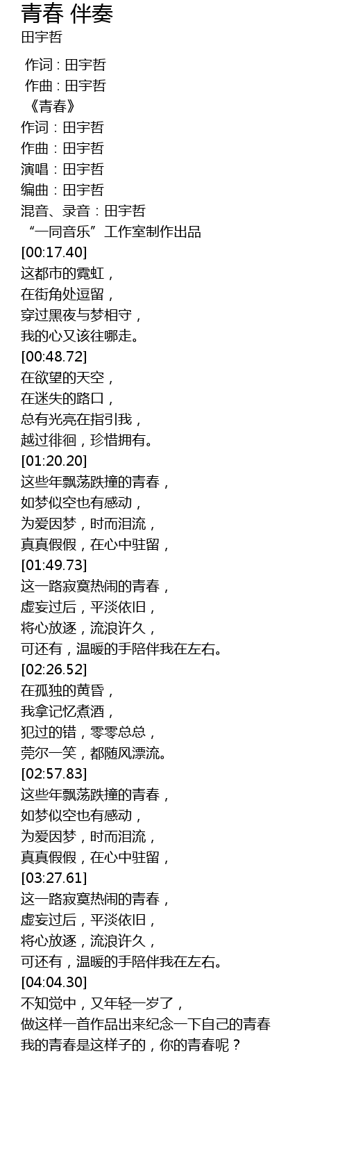 | [04:10.53] | 做这样一首作品出来纪念一下自己的青春 |