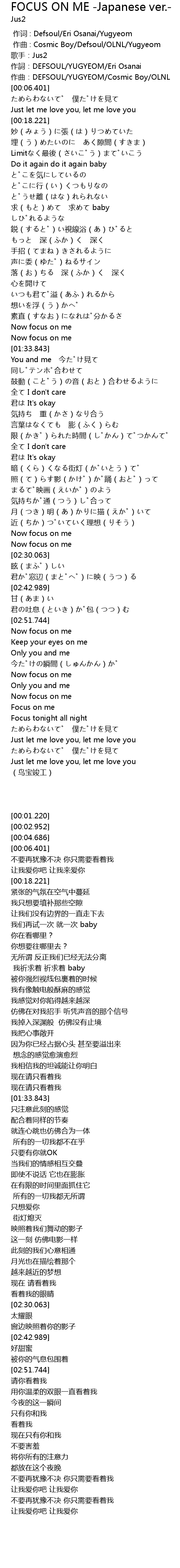 | [00:02.952] | zuo ci: DEFSOUL YUGYEOM Eri Osanai |