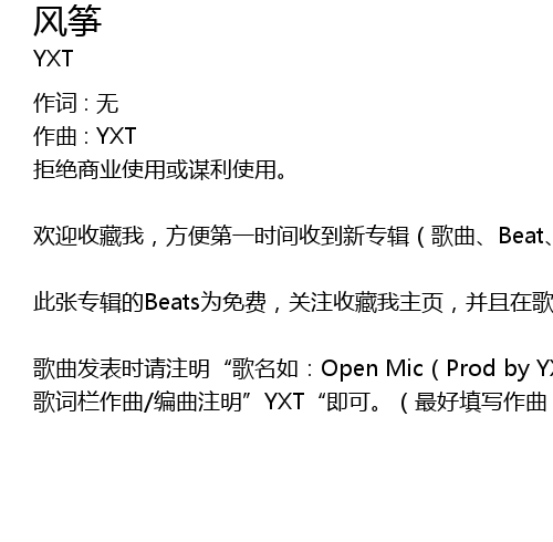 歌曲发表时请注明“歌名如:Open Mic(Prod by YXT)”