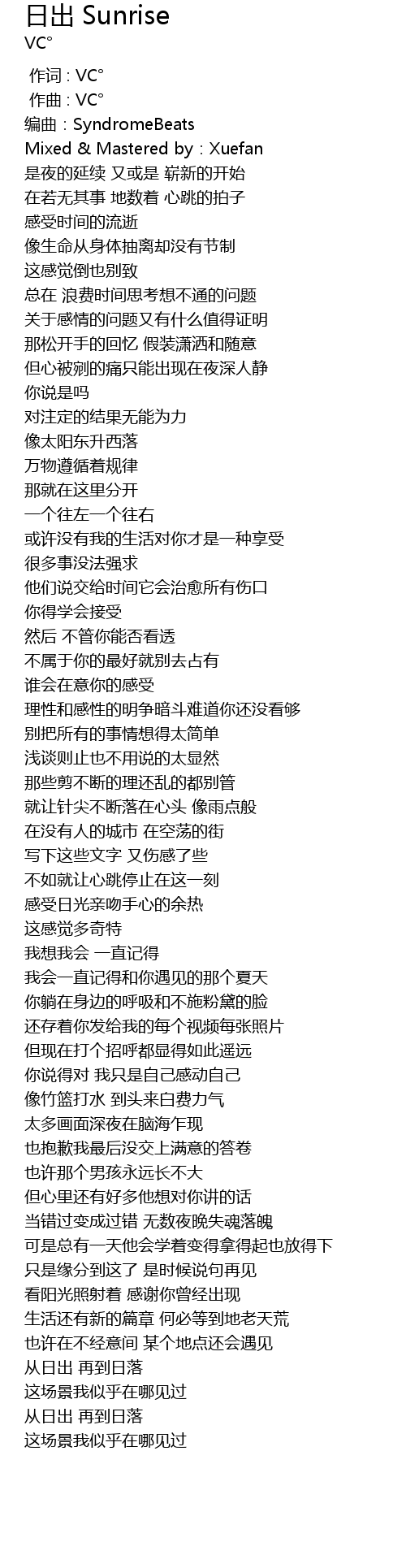 | [00:00.000] | 作词 : VC° |