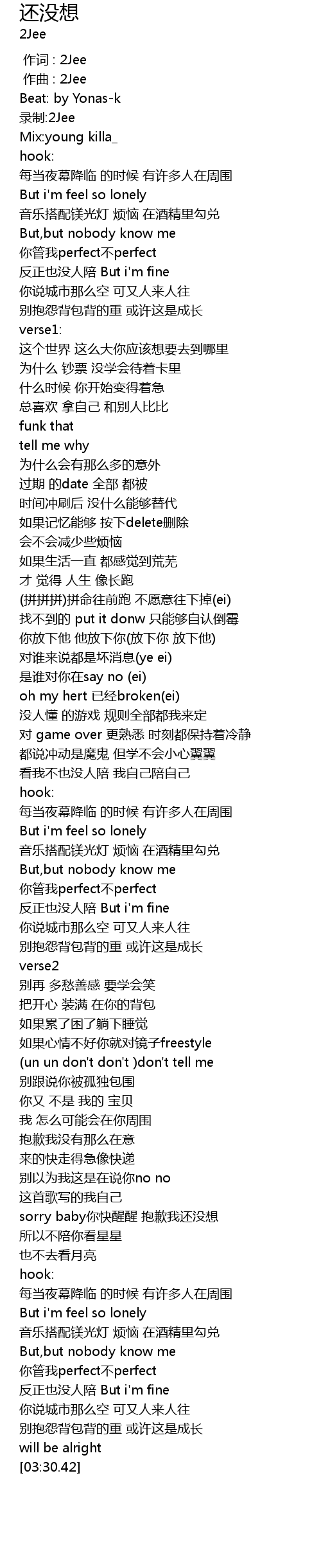| [02:47.56] | sorry baby你快醒醒 抱歉我还没想 |