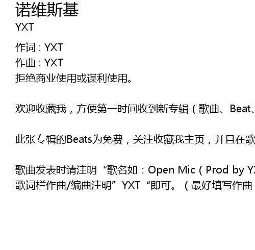 | 歌曲发表时请注明“歌名如:Open Mic(Prod by YXT)” | |