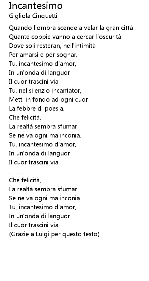 | Song | Incantesimo |