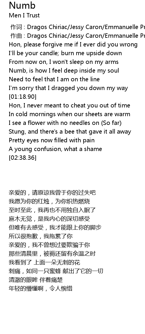 | [00:55.09] | Numb, is how I feel deep inside my soul |
