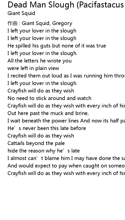 | Song | Dead Man Slough (Pacifastacus Leniusculus) |