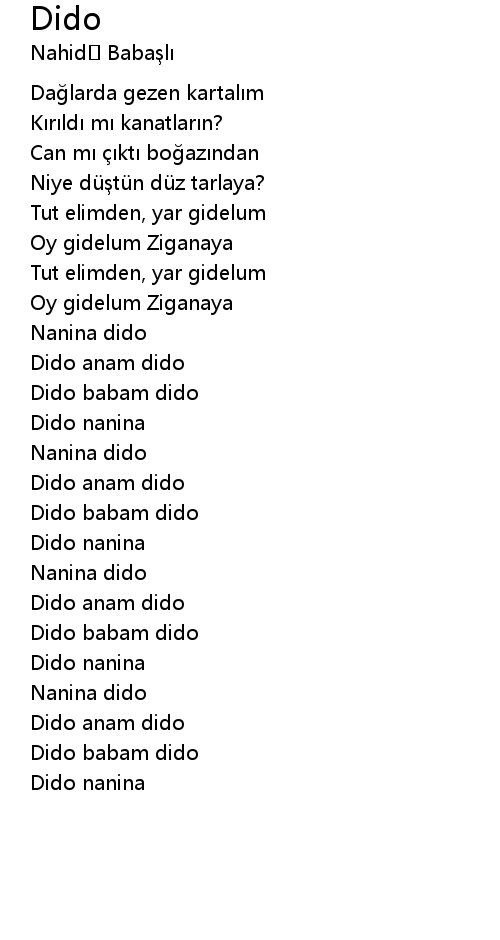 | [01:12.720] | Dido babam dido |