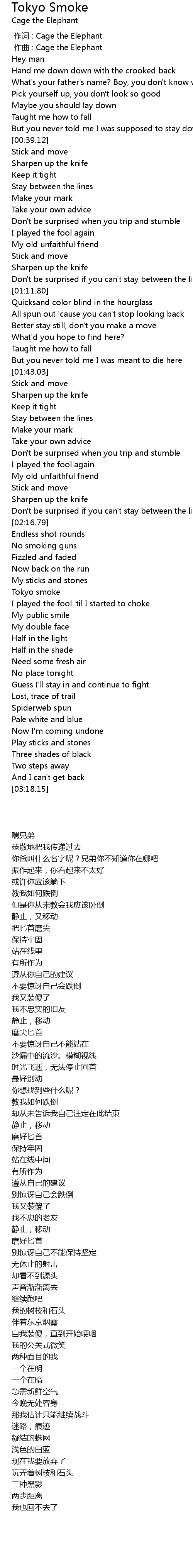 | [00:00.000] | 作词 : Cage the Elephant |