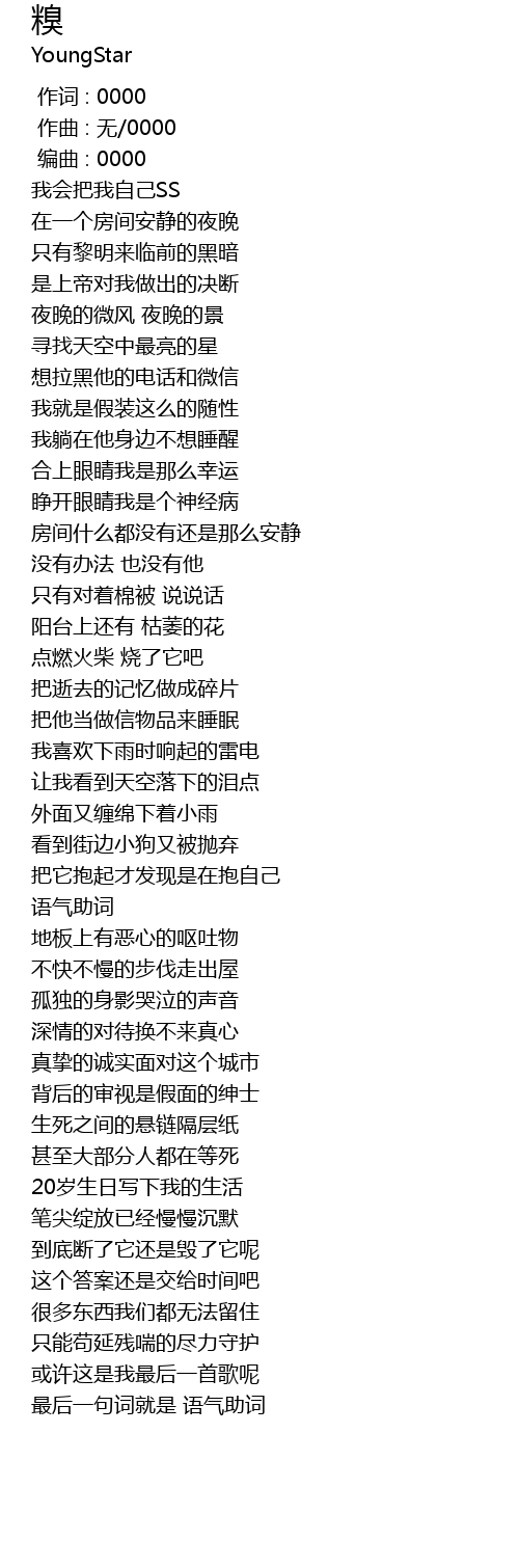 | [00:00.000] | 作词 : 0000 |