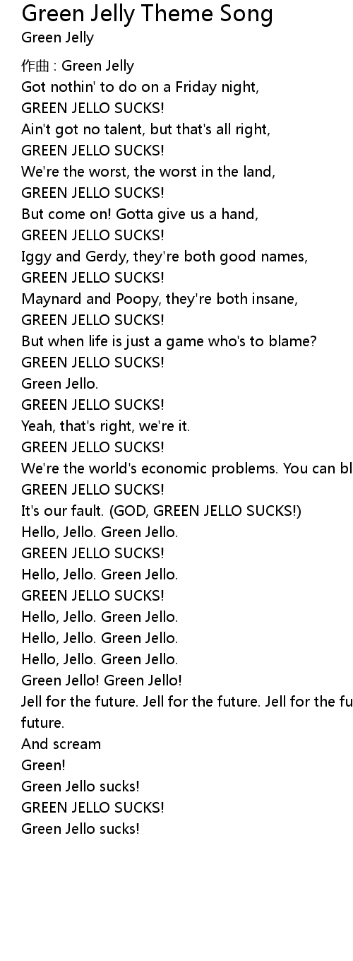 | It' s our fault. GOD, GREEN JELLO SUCKS! | |