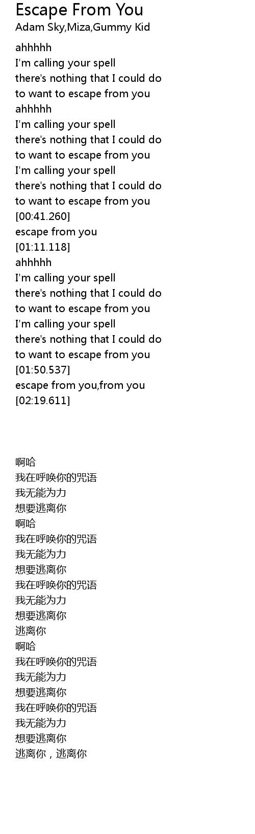 | [02:15.824] | escape from you,from you |