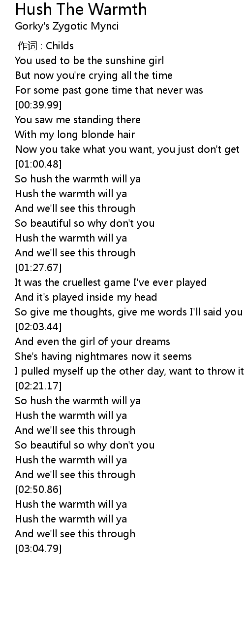 | [01:01.53] | So hush the warmth will ya |