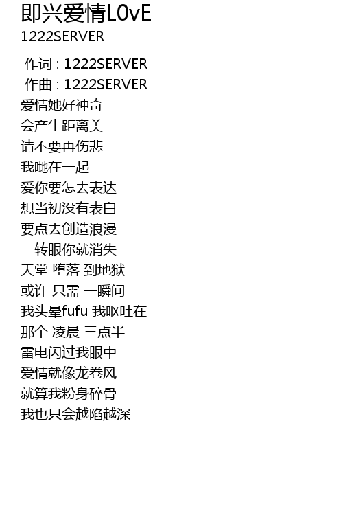 | [00:00.000] | 作词 : 1222SERVER |