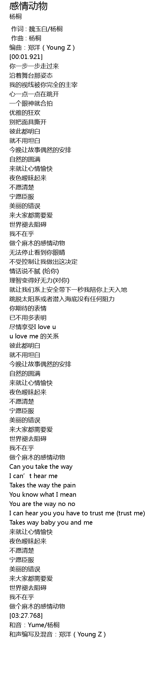 | [02:32.247] | zuò gè má mù de gǎn qíng dòng wù |