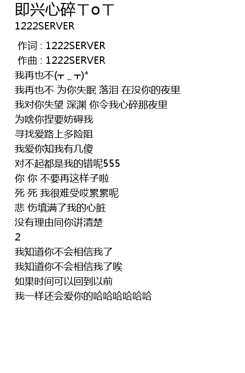 | [00:00.000] | 作词 : 1222SERVER |