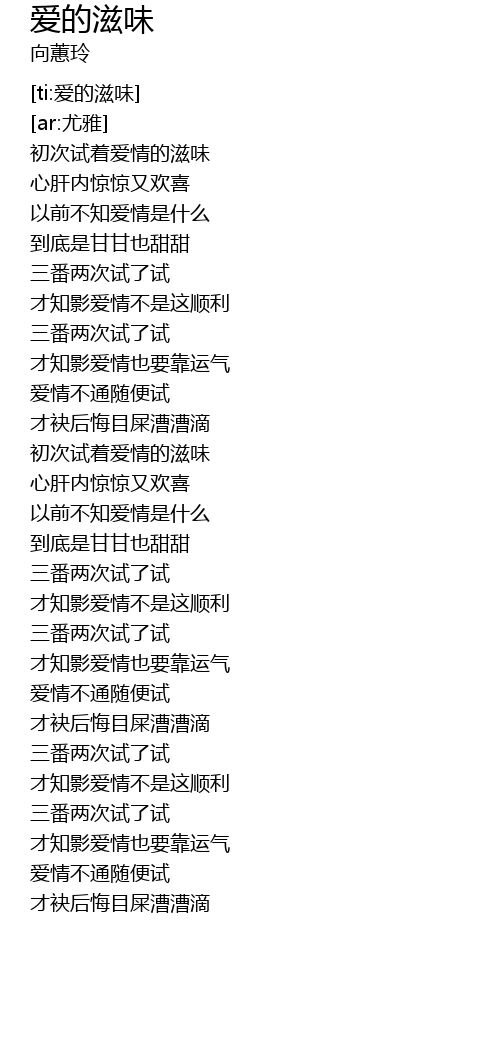 | [00:25.150] | 初次试着爱情的滋味 |