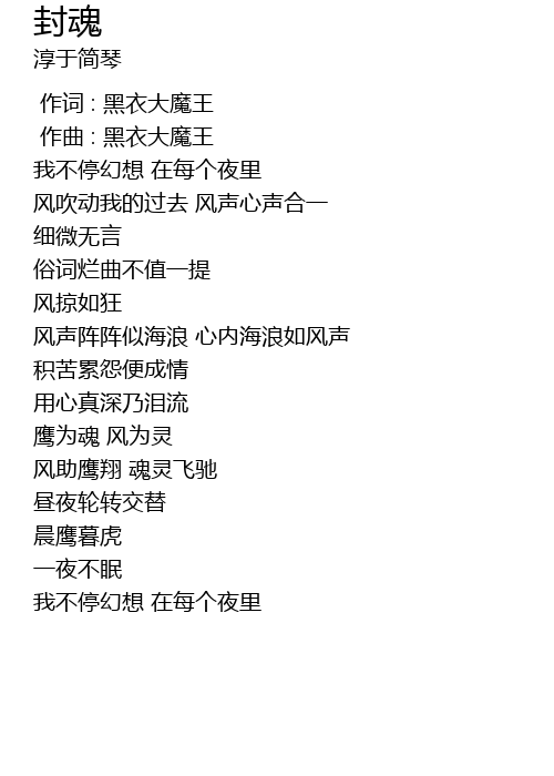 | [00:00.000] | 作词 : 黑衣大魔王 |