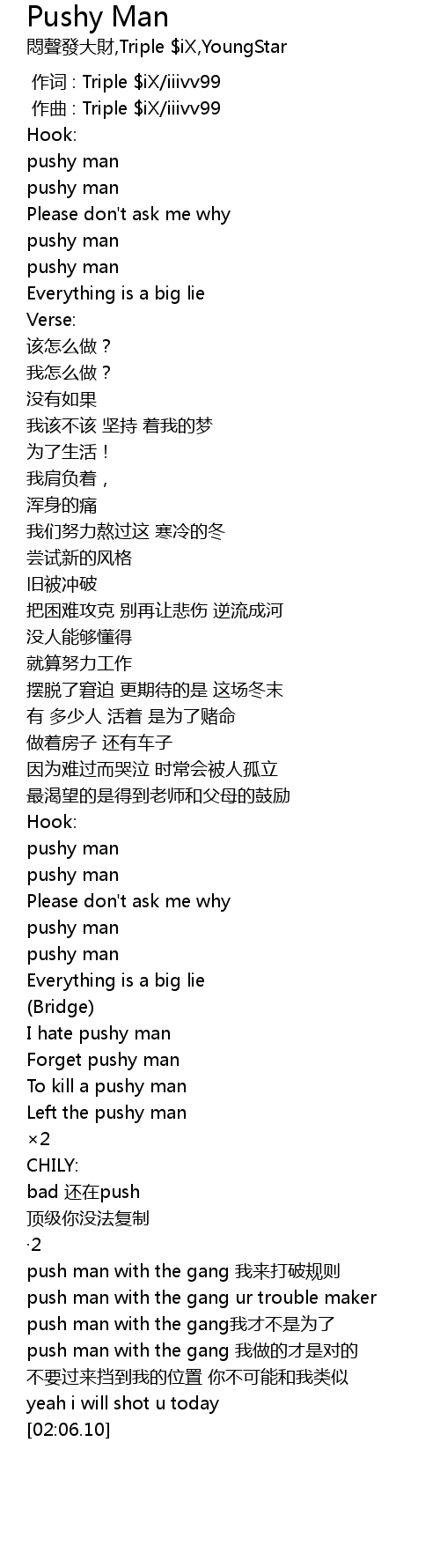 | [01:45.16] | push man with the gang wo cai bu shi wei le |