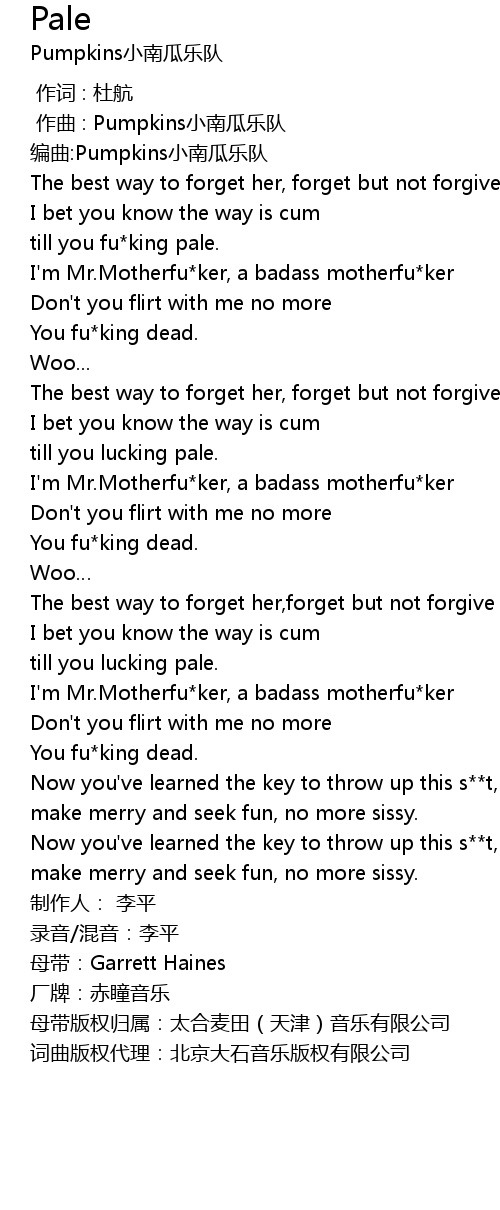 | [00:50.176] | till you fu king pale. |