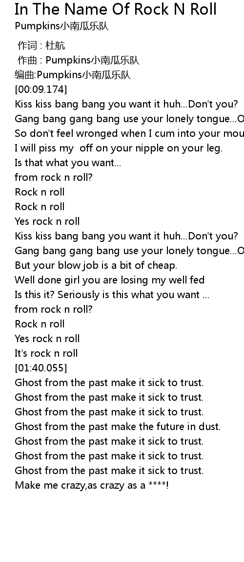 | [00:38.736] | Gang bang gang bang use your lonely tongue...Oh yeah! |