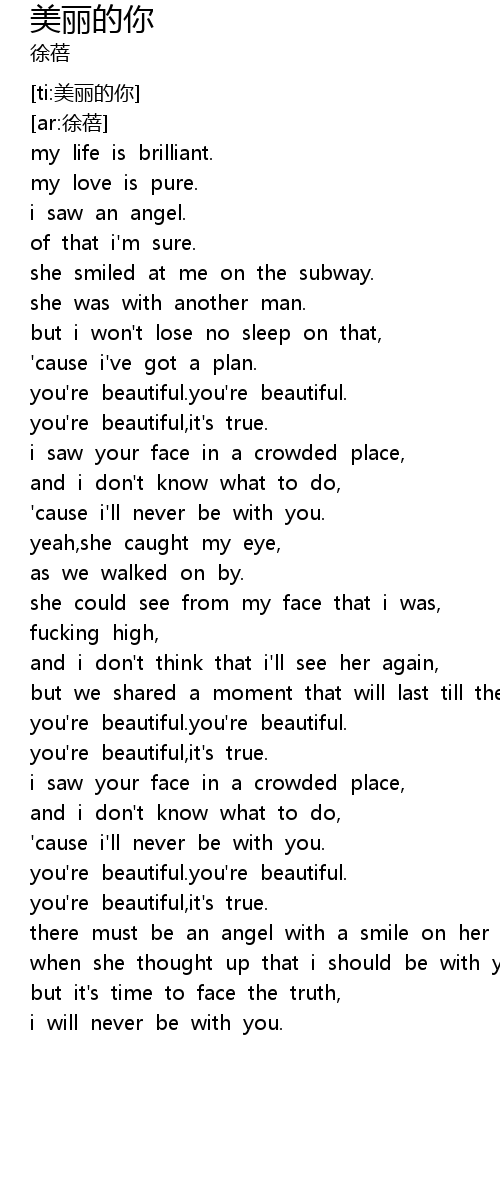 | [00:51.25] | you' re beautiful. you' re beautiful. |