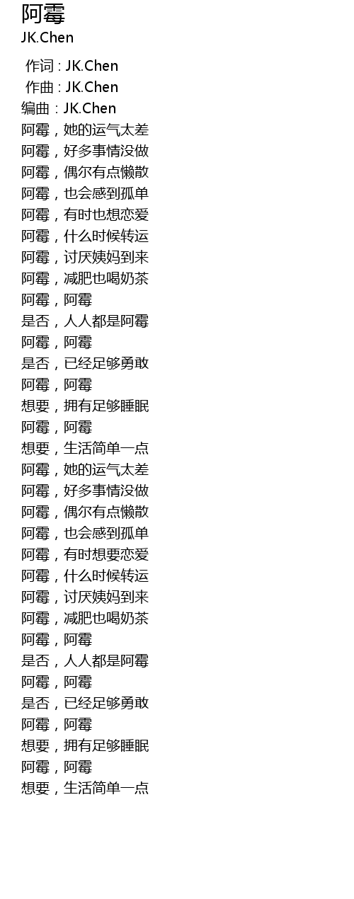 | [02:00.435] | 阿霉,偶尔有点懒散 |