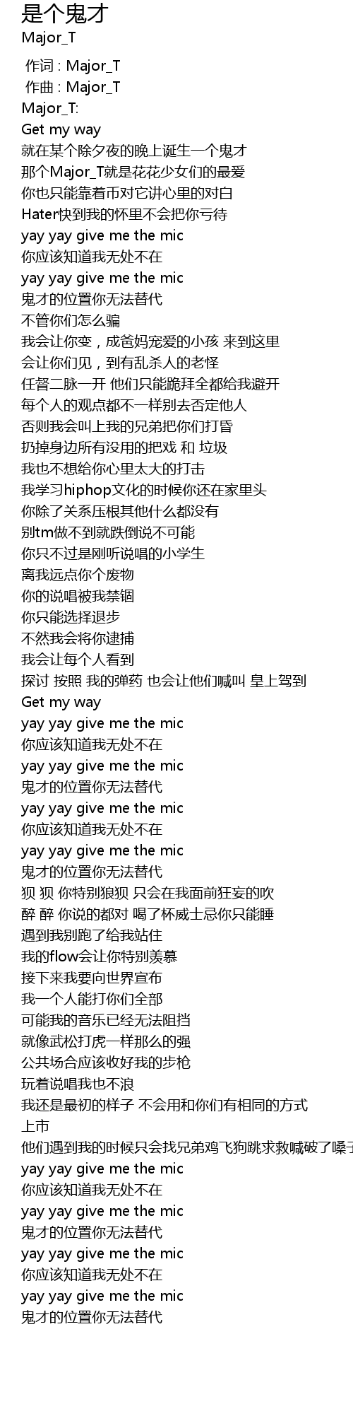 | [00:00.000] | 作词 : Major_T |