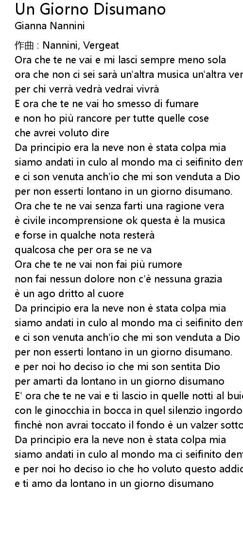 | ora che non ci sei sara un' altra musica un' altra verita per chi vivra | |