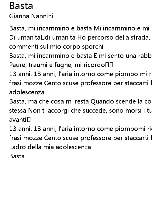 | 13 anni, 13 anni, l'aria intorno come piombomi ricordo Il mio viso sulle dita, frasi mozze Cento scuse professore per staccarti le mani da me.. | |