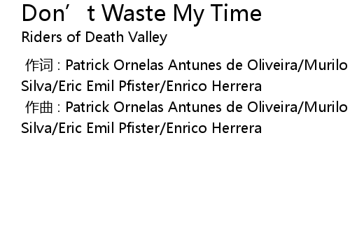 | [00:00.000] | 作词 : Patrick Ornelas Antunes de Oliveira/Murilo de Souza Silva/Eric Emil Pfister/Enrico Herrera |