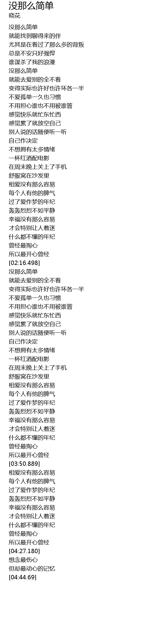 | [03:18.628] | xiāng ài méi yǒu nà me róng yì |