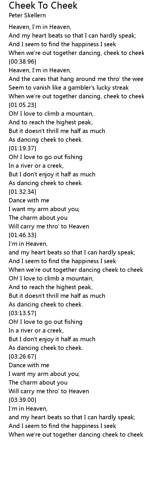 When we're out together dancing, cheek to cheek. |