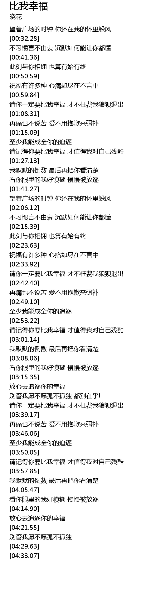 | [03:31.77] | 请你一定要比我幸福 才不枉费我狼狈退出 |