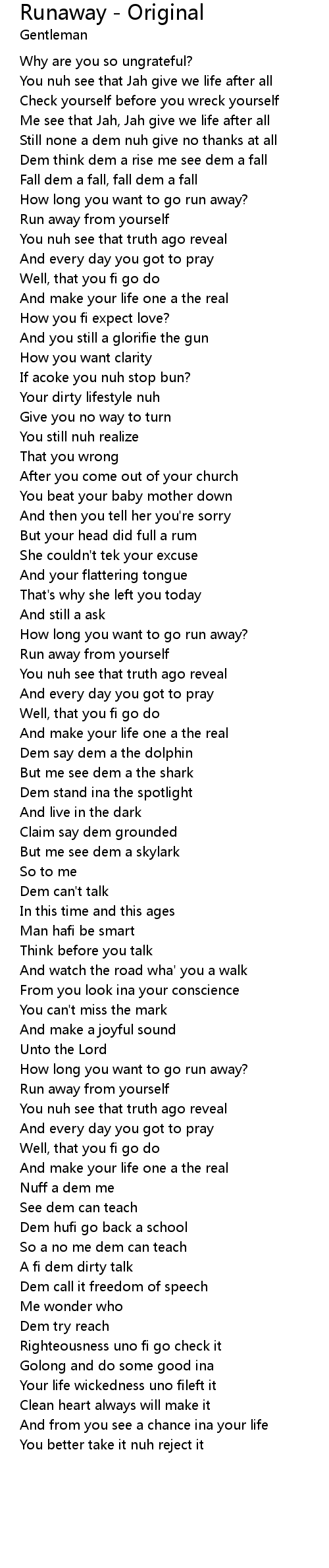 Runaway - Original Lyrics