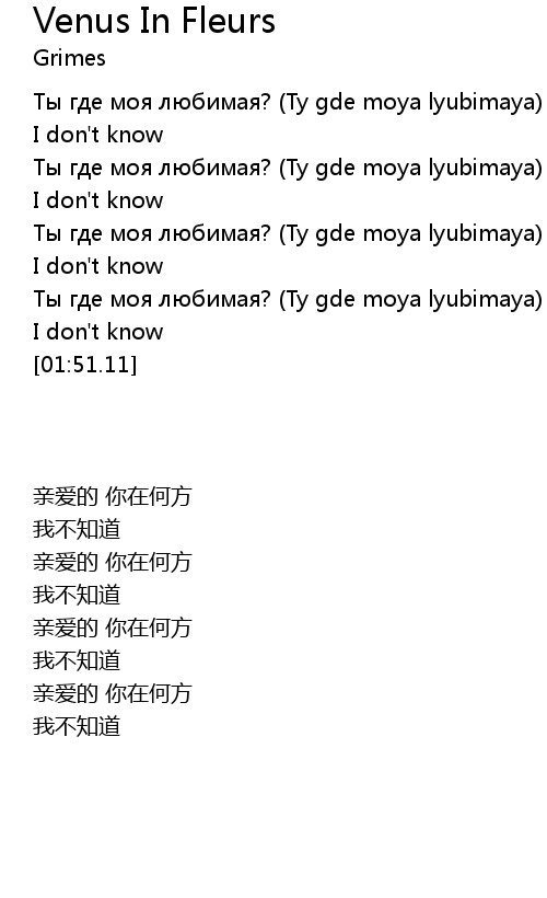 | [01:23.34] | Ты где моя любимая? (Ty gde moya lyubimaya) |