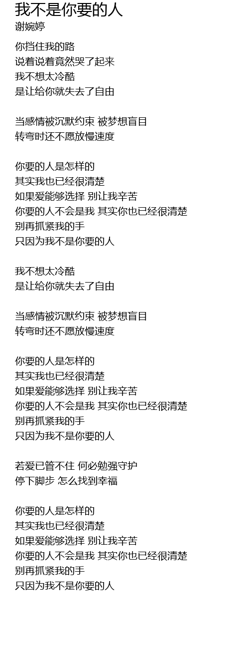 | 你要的人不会是我 其实你也已经很清楚 | |
