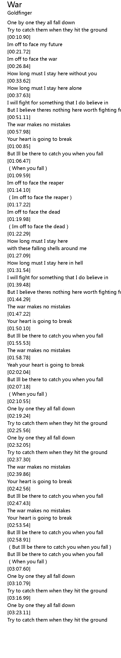 | [01:45.97] | The war makes no mistakes |