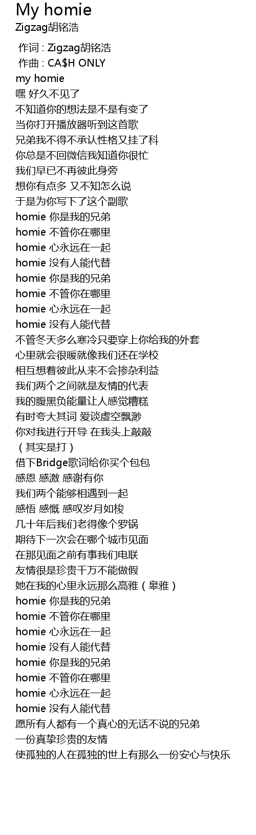 | [00:42.160] | homie nǐ shì wǒ de xiōng dì |