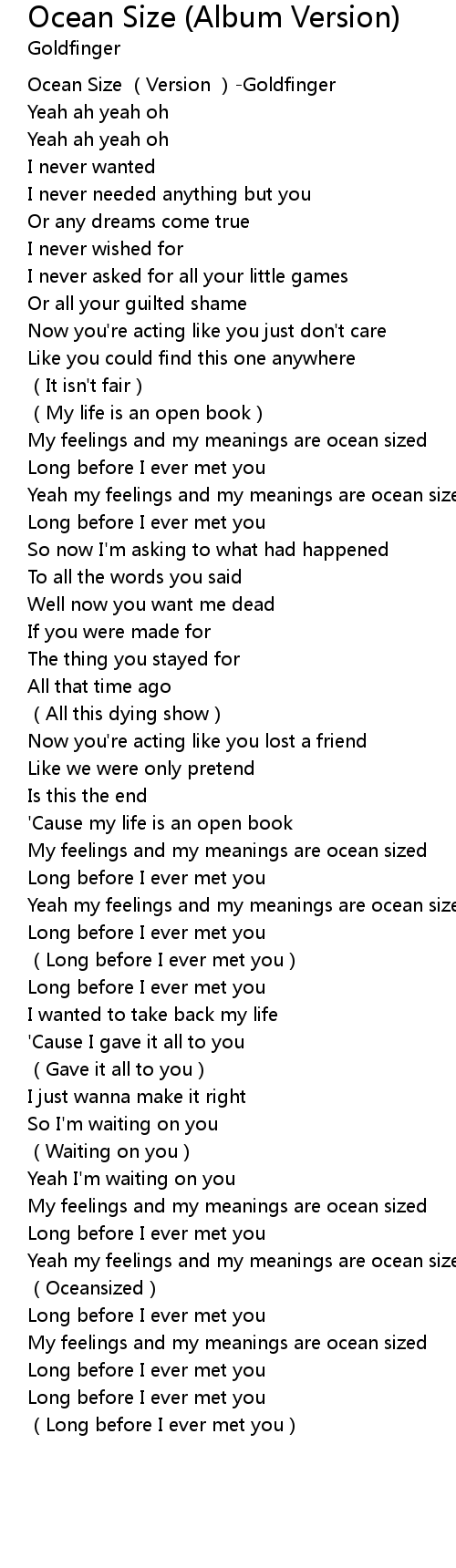 | [00:00.00] | Ocean Size (Version )-Goldfinger |
