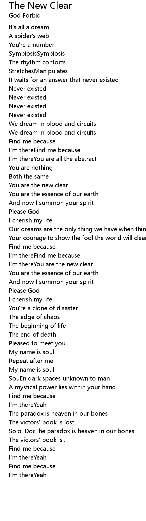I'm thereYou are the new clear |