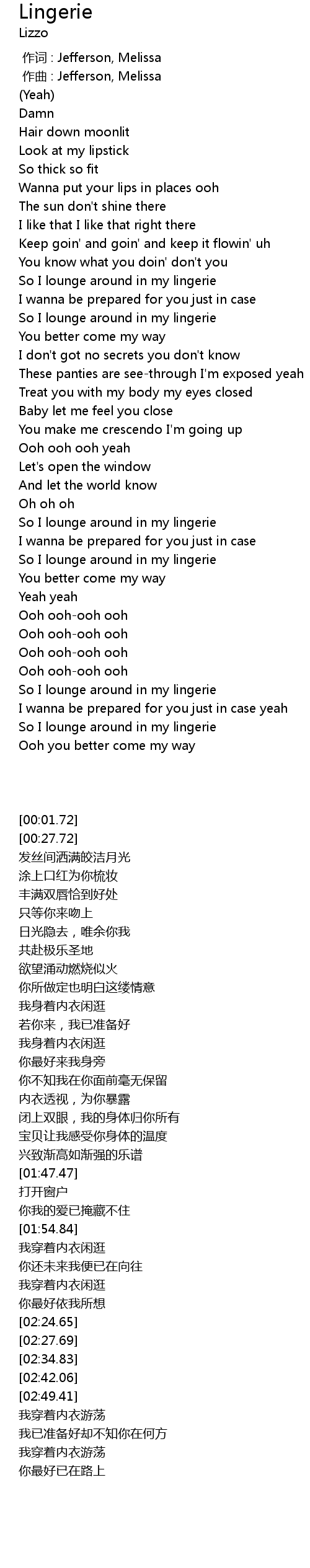 | [02:57.11] | So I lounge around in my lingerie |