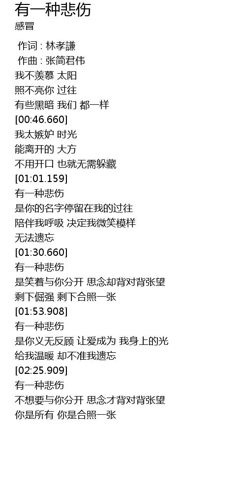 | [02:11.159] | yǒu yī zhǒng bēi shāng |