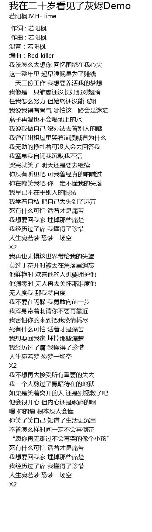| [01:56.283] | 死有什么可怕 活着才是痛苦 |