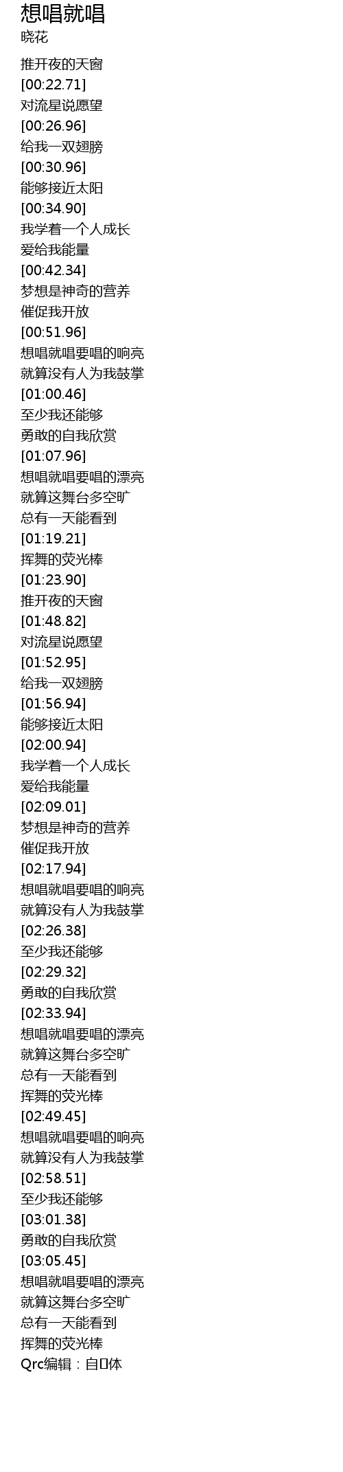 | [00:53.03] | 想唱就唱要唱的响亮 |