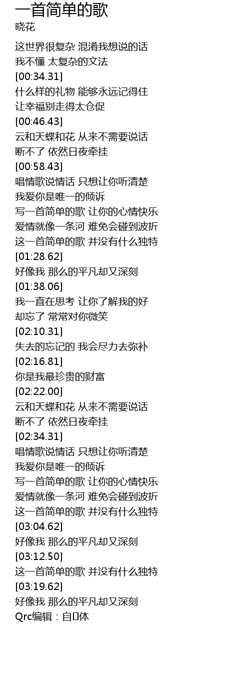 | [02:46.87] | 写一首简单的歌 让你的心情快乐 |