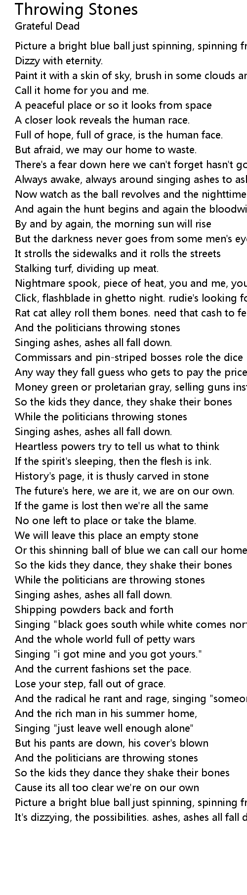 Singing ashes, ashes all fall down. |