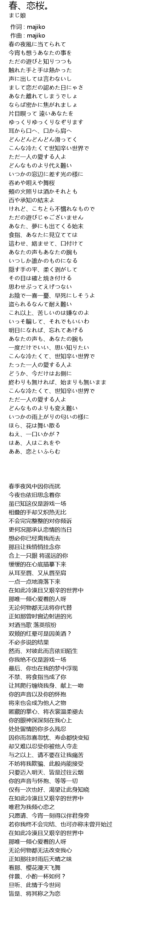 | [00:00.000] | 作词 : majiko |