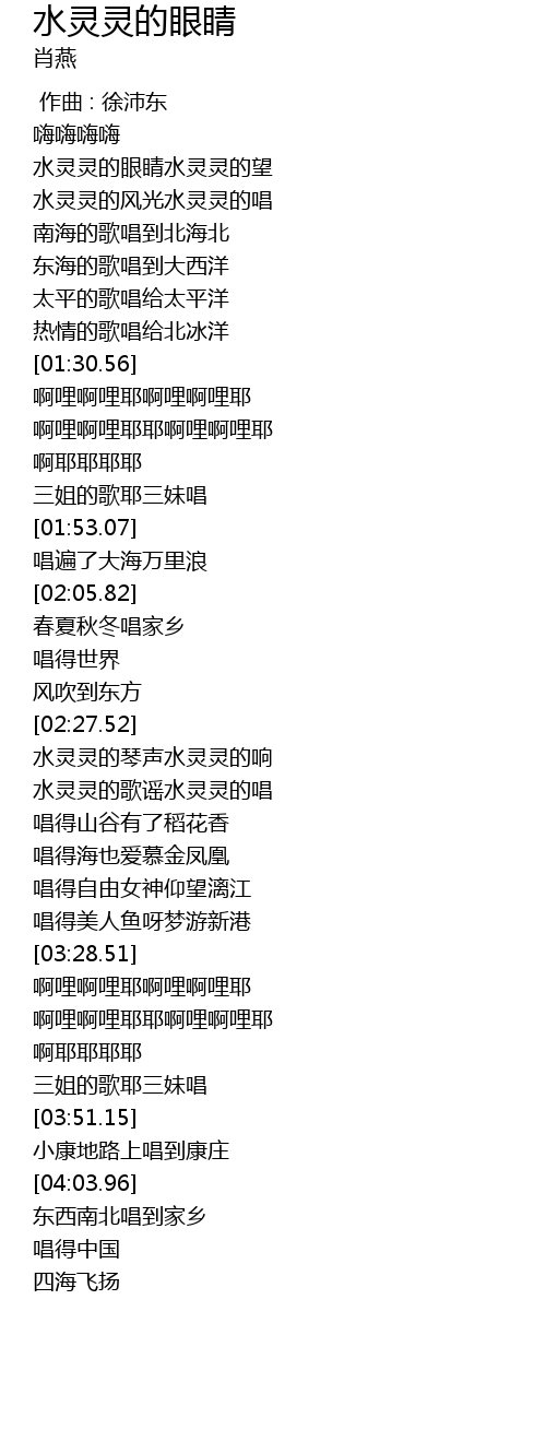 | [02:41.77] | 水灵灵的琴声水灵灵的响 |
