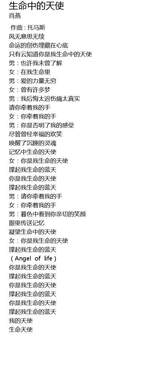 | [02:17.45] | 女:你是我生命的天使 |