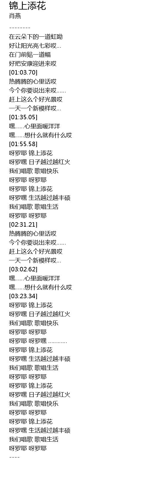 | [03:26.81] | 呀罗耶 锦上添花 |
